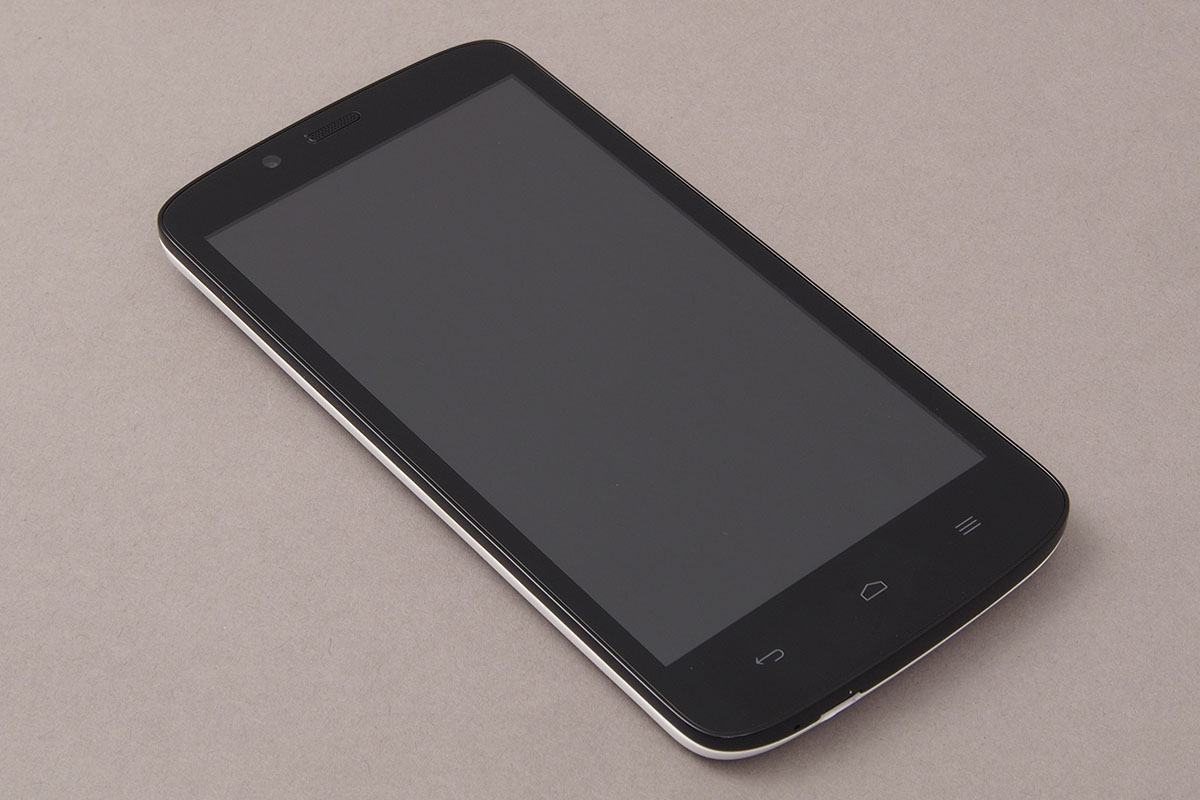 A megcélzott vásárlói réteget figyelembe véve a dizájn teljesen átlagosnak mondható, a telefon elöl fényes fekete üvegburkolatot, hátul fehér, műanyagból készült borítást kapott. Elöl az 5 colos kijelző terpeszkedik, amelynek elhelyezkedése nem szimmetrikus, a telefon felső részéhez kissé közelebb helyezkedik el. Talán ennek is köszönhető, hogy a márkanév lemaradt, és a panel felett csak a beszédhangszóró, az előlapi kamera és a fényérzékelők számára jutott hely. A kijelző alatti nagyobb hely három érintős gombot tartalmaz, amelyek funkciója (balról jobbra haladva) vissza, Home és menü. Hogy egy kicsit előre szaladjuk, a kiosztás nem a legszerencsésebb, mivel a telefonon az Android 4.4-es változata fut, amelyhez a feladatkezelőt előhívó gomb jobban passzolt volna – de ez persze valamennyire ízlés dolga is. Azért a feladatkezelőt is elő lehet csalogatni: ehhez a menü gombot kell lenyomva tartani kb. 1 másodpercig.