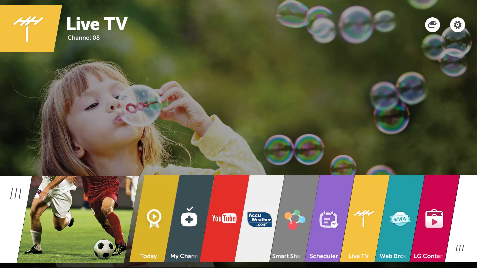 A kezelőfelület alapjaiban nem változott, a programokat továbbra is a képernyő alsó részén megjelenő kártyácskák jelzik, és ugyanolyan maradt a menü dizájnja is. Funkcionalitás terén ugyanakkor vannak újdonságok: például a „My Channels” kártya megjelenése, amely a kedvenc csatornákhoz ad gyors hozzáférési lehetőséget. Az alkalmazások is a kártyák segítségével érhetők el, amelyekből a főképernyőre kilenc fér, sorrendjük pedig tetszőlegesen változtatható. A szoftver erőssége, hogy egyszerre több alkalmazást is kezel, amelyek között a balra, oldalt elérhető feladatkezelővel váltogathatunk. A telepített alkalmazások listája a ráncfelvarráson átesett LG Store-ból bővíthető, a kínálatban pedig természetesen ezúttal is vannak hazai vonatkozású appok szép számmal.