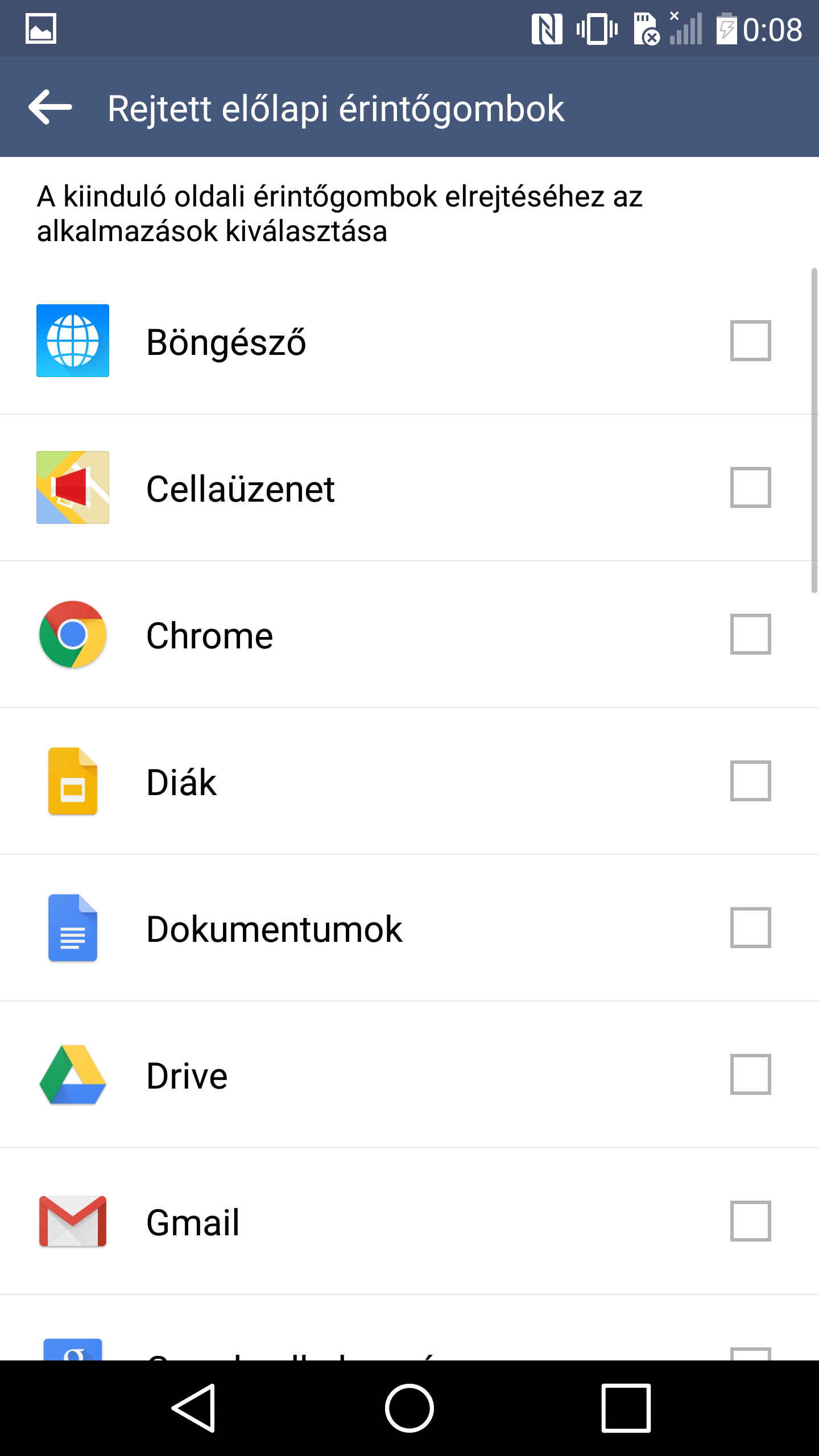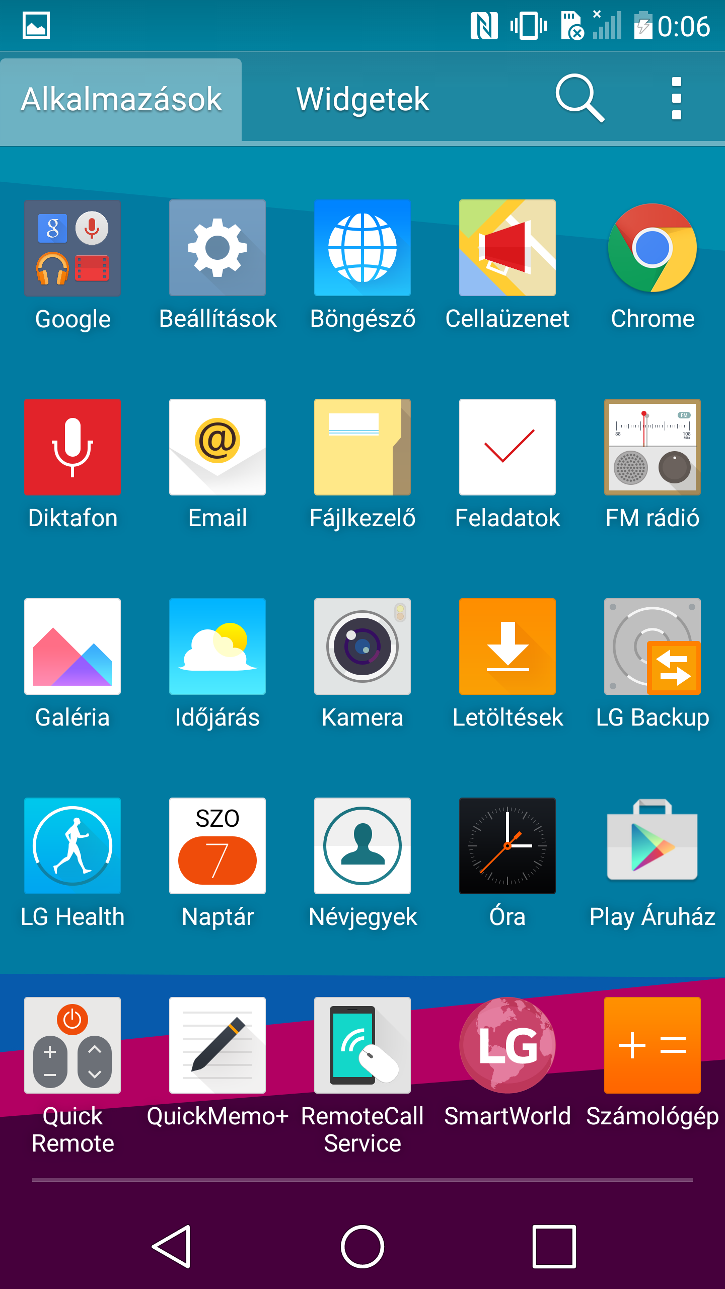 Az alap szett mellé az LG relatív kevés alkalmazást tett a mobilra, ezzel is igazodva a Google irányelveihez. Nyilván azért kapunk egy megfelelő kiindulási alapot, amelybe a klasszikus telefonos eszközök mellett rengeteg Google szoftver is beletartozik, és vannak azért egyedi megoldások is.