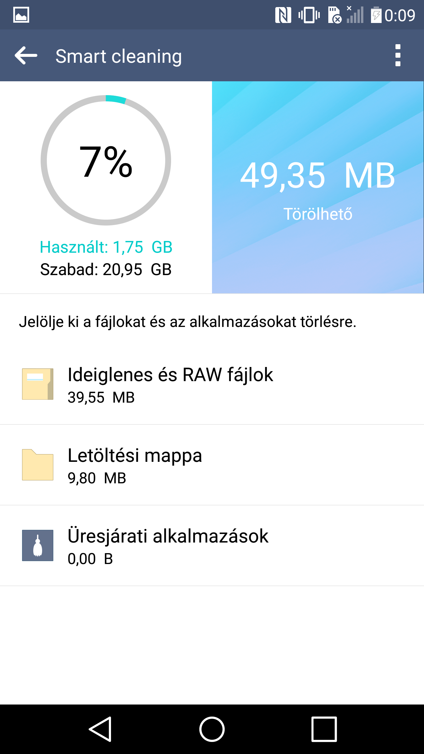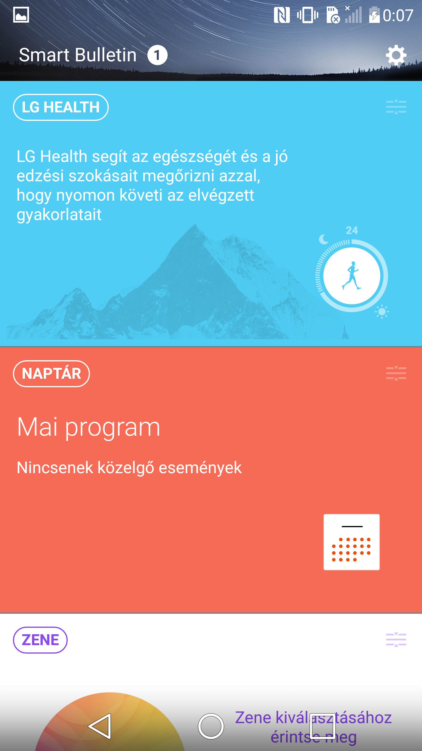 Az LG saját alkalmazásai közül a QuickMemo+-ról már szóltunk, emellé kapunk még egy biztonsági mentések appot (LG Backup), egy univerzális távirányítót (Quick Remote), hozzáférést az LG Smart Worldhöz (saját alkalmazásbolt, további rengeteg érdekes programmal) és a távoli segítség nyújtására alkalmas RemoteCall Service-t is. Az LG saját hangalapú keresője Voice Mate néven működik, és a tévékhez hasonlóan egészen jól tud magyarul is – ez a konkurensek megoldásairól nem mondható el. És persze kötelezően a mobilon figyel az LG Health is, amely a testmozgásunk eredményét segít nyomon követni.