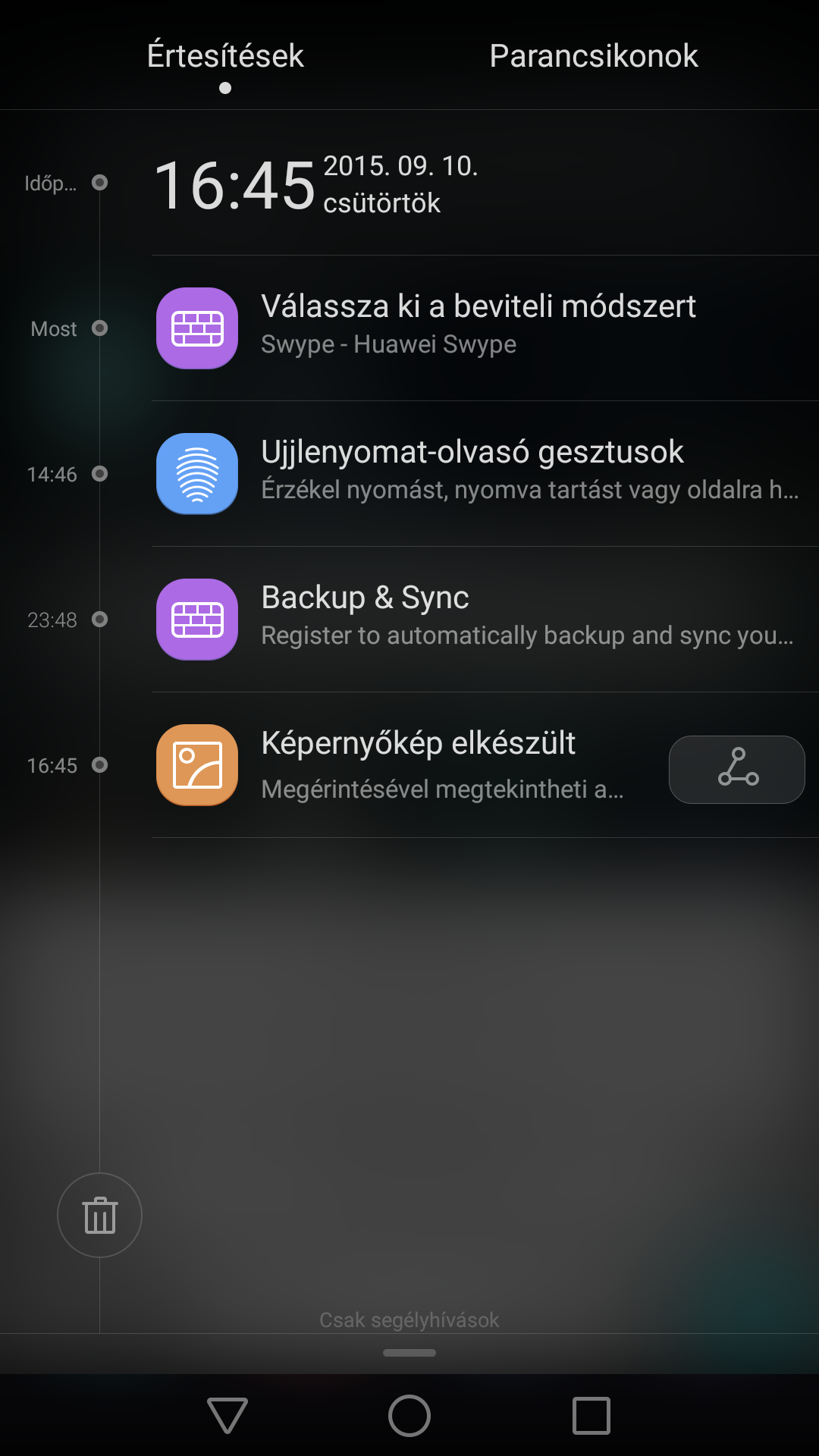 A Huawei mérnökei bátran változtattak az Android gyári felületein is, a Mate S értesítési tárhelye például kihangsúlyozza az üzenetek beérkezési idejét, a feladatkezelő pedig egyszerre négy appot mutat egymás mellett, az összes szoftver bezárásának lehetősége mellett. A lezáró képernyő alapesetben egyszerű simítással oldható fel, viszont indítható róla közvetlenül a kamera, ha pedig a Knuckle-t is használjuk, akkor az ujjunkkal C, E, W vagy M betűt rajzolva az általunk kiválasztott alkalmazás fog elindulni. Lentről felhúzható az a kapcsolópanel is, amivel a zenelejátszó alapszintű vezérlése mellett a hangrögzítőt, a számológépet és a zseblámpát indíthatjuk el.