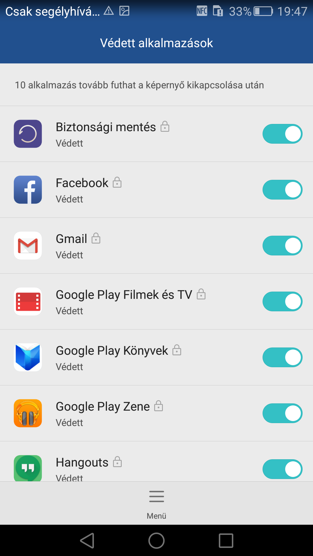 Az alkalmazásoknál egyedileg állítható be, hogy egy adott program fusson-e lezárt képernyő mellett, és a 3G/4G valamint WiFi kapcsolatot is ugyanilyen módon korlátozhatjuk. A telefon jól bánik a hálózatokkal is: a WiFi+ a 4G/3G hálózat és a WiFi kapcsolat között tud automatikusan váltani helyadatok valamint a jel minősége alapján, a Signal+ bekapcsolásakor pedig minden antennát a mobil kapcsolatra állít át a telefon, növelve ezzel a jelminőséget.