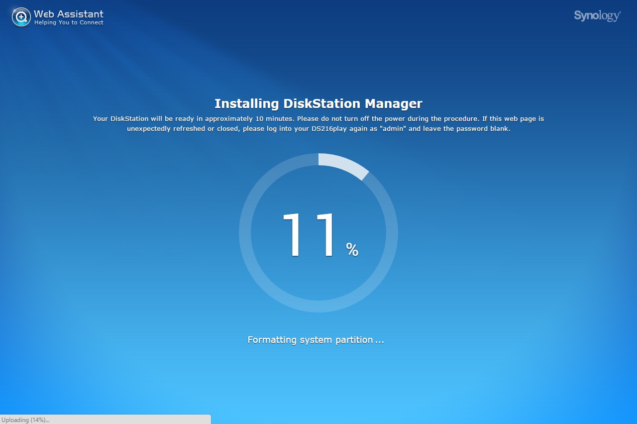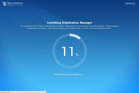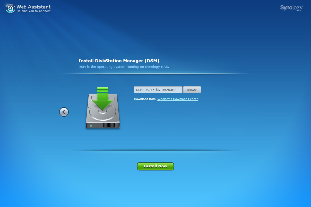 A Synology DS216play belső felépítése nincsen túlbonyolítva, a HDD-k beszereléséhez például csak az oldalsó rész eltávolítására, négy csavarra, egy csavarhúzóra és kb. 2 percre van szükség. A kialakításból adódóan 3,5 colos illetve 2,5 colos meghajtókat is használhatunk, viszont zajcsillapítást csak 3,5 colos HDD-k beszerelésekor kapunk. Jó Synology szokás szerint a DS216play sem rendelkezik saját tárhellyel, így a Disk Station Manager aktuális verzióját a netről kell letöltenünk, és kézzel kell feltelepíteni. Ettől persze túlságosan nem kell megijedni, mivel a download.synology.com weboldalon minden ehhez szükséges fájlt megtalálunk: a Synology Assistant szoftver, ami megkeresi a NAS-t a hálózaton, és felajánlat az első telepítést, valamint a DSM-ből a legfrissebb szoftvert, ami jelenleg az 5.2-es változat. A módszer mellett szól, hogy így teljesen biztos, hogy a vásárló a legfrissebb operációs rendszert kapja, függetlenül attól, hogy a megvásárolt terméket hónapokkal korábban vagy csak pár napja gyártották. Maga a telepítés gyors, kb. 10 percet vesz igénybe. Ha a szoftver végzett, akkor egy varázsló segít végigszaladni az alapvető beállításokon: belépési név és jelszó, DSM frissítési beállítások, QuickConnect fiók és bővítmények telepítése.