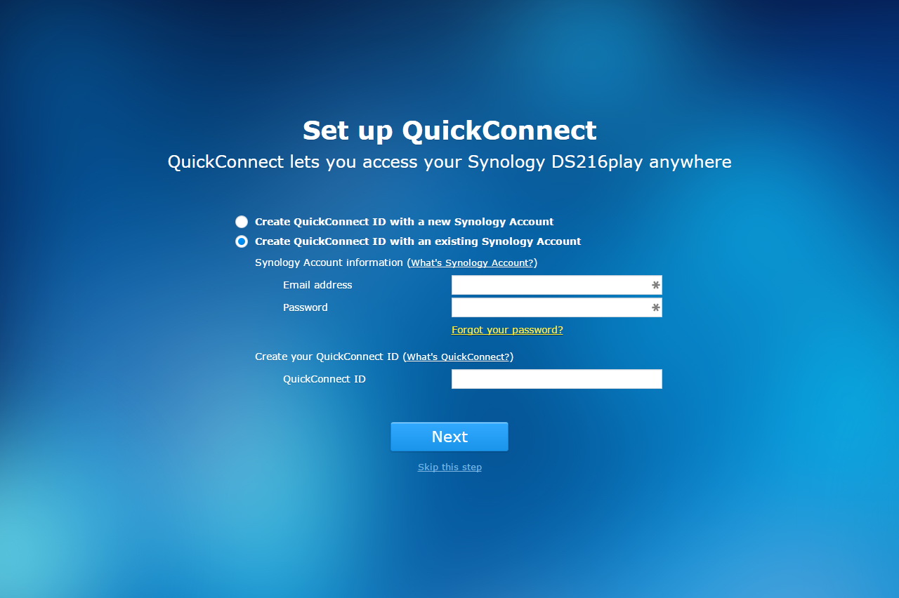 A DS216play támogatja továbbá a QuickConnect csatlakozási módot, amely a Synology saját dinamikus DNS szolgáltatása; vele a felhasználók a világ bármely pontjáról egyszerűen (felhasználói név és jelszó segítségével) érhetik el a NAS-t.