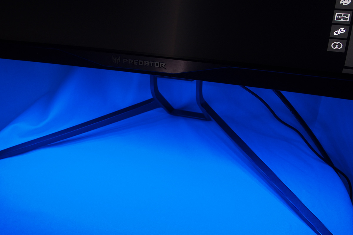 A háttérvilágítás eloszlása a 21:9-es képarányt is figyelembe véve, és főleg az ívelt formát is nézve jó, de teljesen fekete képnél azért megfigyelhető némi bevilágítás a sarkoknál. Clouding szerencsére szinte egyáltalán nincsen. A betekintési szögek kiválóak, de mint minden IPS-panellel szerelt monitornál, úgy az Acer Predator X34-nél is gyorsan csökken a kontraszt, ha a képet oldalról nézzük, mivel ebbe az irányba a háttérfény jobban kiszűrődik, és ez a sötétebb árnyalatok kivilágosodását okozza (IPS-glow). A 21:9-es képarány miatt ez a jelenség a széleken az arra érzékenyek számára valamennyire látható is, de normál használat közben nem lesz ebből probléma (de akkor észrevehető lehet, ha mondjuk sötétebb jeleneteknél tart a film.) A háttérfénynél maradva fontos kiemelni, hogy az Acer a fényerősséget a LED-ek fényének változtatásával oldja meg, így bármilyen fényerőt is állítunk be, vibrálástól nem kell tartani (szemben a PWM-mel működő szabályozásnál, ahol a LED-ek villogtatásának sebessége adja meg az aktuális fényerőt).