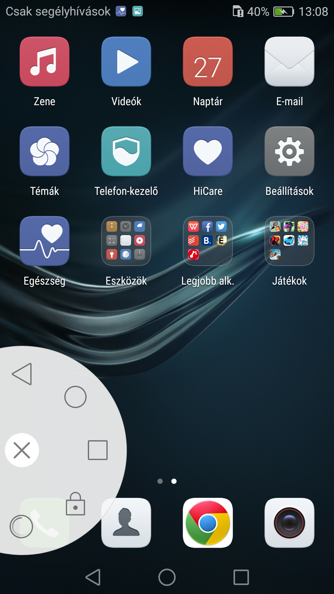 A naptár nemcsak napi, heti és havi, hanem éves megjelenítésre is képes. Levelekhez a Gmail mellett ott az E-mail is, de szerintünk utóbbi mellett nem igazán szólnak érvek. A Telefon-kezelő koncentrált módon vonultat fel néhány igen fontos funkciót (lehet például korlátozni az appok WiFi és 3G/4G hozzáférését), a HiCare pedig a Huawei saját online segítségnyújtó platformja. A zenelejátszó is tud néhány érdekes trükköt (pl. szűrés hossz alapján, időzítő, dalszöveg kijelzése), viszont az EQ kimaradt belőle; helyette a DTS hangzással lehet a mély hangokat kicsit kiemelni.
