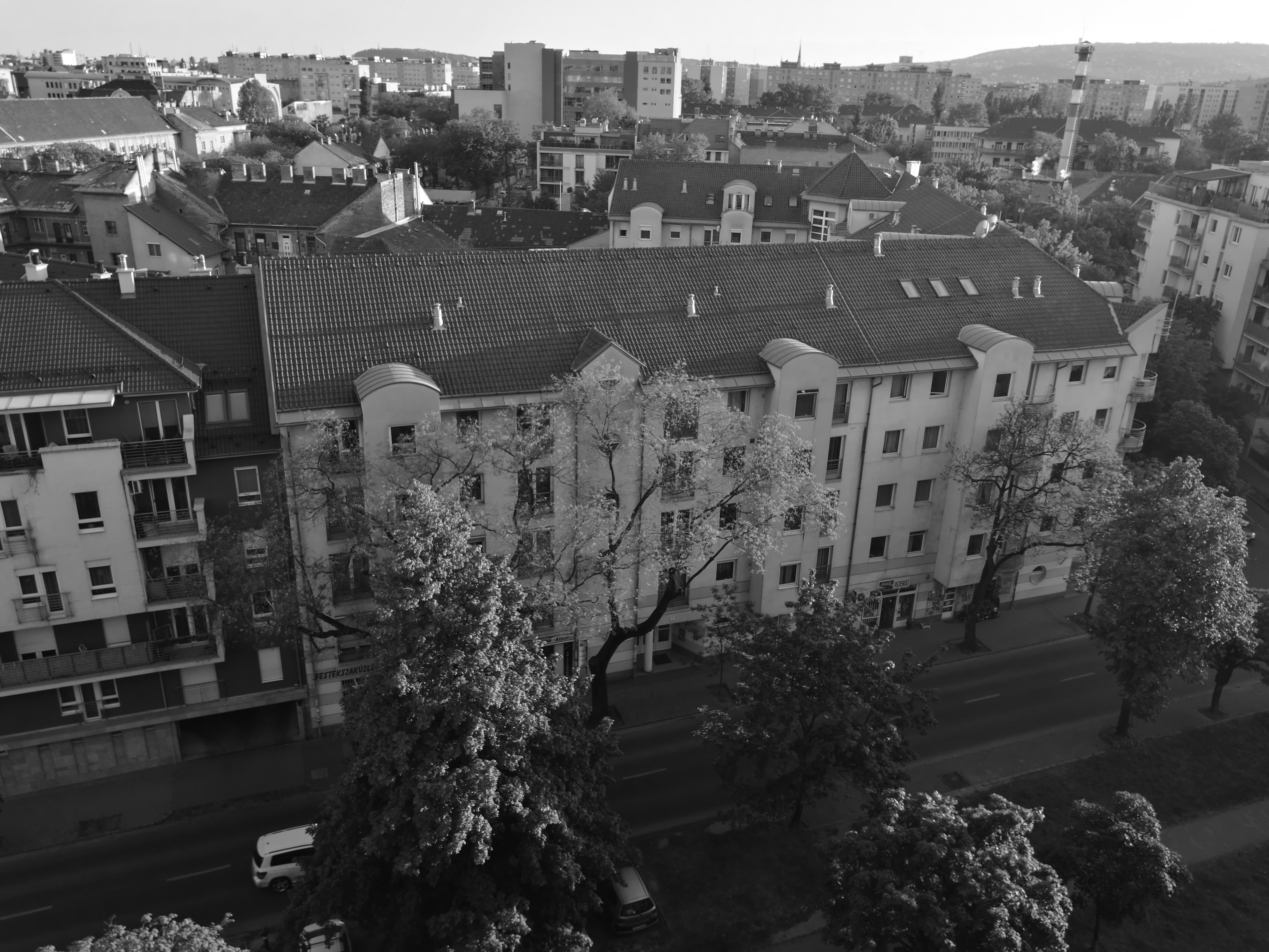 Ennél sokkal fontosabb azonban, hogy mire képes a kamera akkor, ha rosszak a fényviszonyok. Ilyenkor a monokróm és az RGB kamera információit dolgozza egybe a szoftver, így a végeredmény alapesetben egy színes, de relatív kevés zajjal bíró fotó lesz a végeredmény. De persze dönthetünk úgy is hogy fekete-fehér képeket lövünk. A korrekt összehasonlítás kedvéért ezúttal is lőttünk pár tesztfotót egy Galaxy S6-tal (ugyanott, ugyanakkor) így jól megfigyelhető, hogy mennyire eltér a sötétben készített fotók karakterisztikája a két mobil esetében.