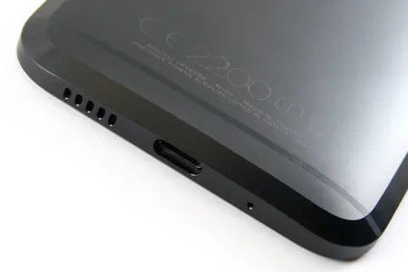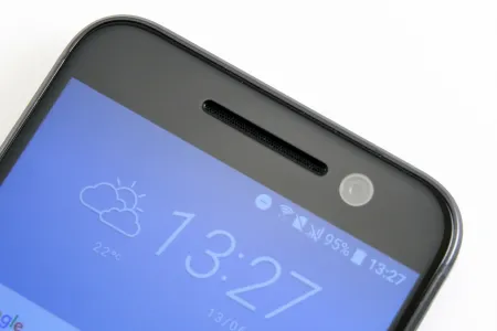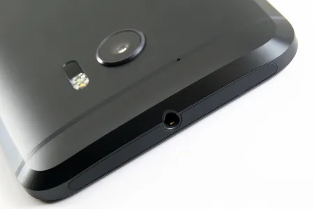 Az abszolút trendi és szimmetrikus kialakítású USB Type-C csatlakozó aljzat az alsó él közepén figyel, tőle balra egy mikrofonra, jobbra pedig öt hosszúkás lyukra lehetünk figyelmesek. Utóbbiak mögött rejtőzik a megújult BoomSound hangrendszer alsó hangszórója, amely ezúttal tehát már nem a kijelző alatt helyezkedik el. A BoomSound másik hangszórója értelemszerűen a felső szekcióban található, ahol is a méretes frontkamera és az apró notifikációs LED társaságát élvezi. A hangminőséggel mind fülhallgatós, mind kihangosítós formában maximálisan elégedettek lehetünk, amiben többek közt a Hi-Res Audio támogatás is komoly szerepet játszik. A hátoldalt két vízszintes antennacsíkot kapott HTC 10 IP53-as minősítéssel rendelkezik, vagyis vízbe merülni és nagyon elázni nem igazán ajánlott vele, egy kis por és némi fröccsenő víz azonban elvileg nem tehet kárt a technikában.