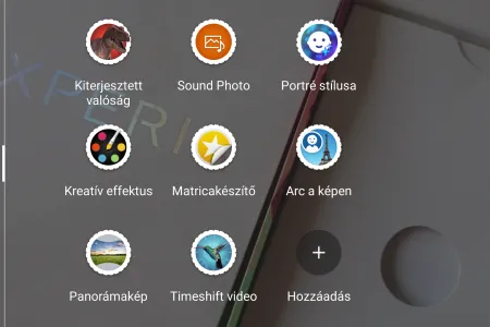 Felvételi módok: Kiváló automatikus, kézi, kiterjesztett valóság, Sound Photo, portré, kreatív effektus, matricakészítő, Arc a képen, panoráma