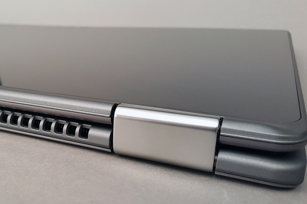 A gép a vékonyabbak közül való, vastagsága éppen 2 cm, így a vetélytársai inkább vastagabbak mint vékonyabbak. Nyilván nem érdemes összevetni az Acer R15-öt egy olyan kütyüvel, ami csak tabletként működik, hiszen a 2-in-1 gépeknél nem megoldható, hogy mindkét kategória fontos tervezési szempontjai egyszerre érvényesüljenek. A tömeggel sincsen különösebb gond, persze a 15 colos méretből adódóan tesztünk alanya semmiképpen sem tartozik a pehelysúlyú versenyzők táborába, 2,16 kg-ot nyom.