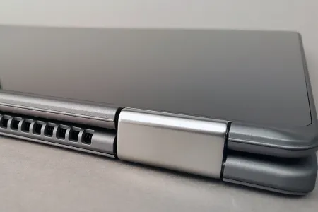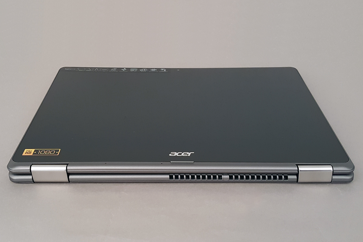 A címből és a bevezetőből is kiderülhetett, hogy az Acer R15 egy hibrid gép, amelyet elsősorban notebookként, másodsorban pedig tabletként tudunk használni. Az Acer gépei az utóbbi időben eléggé egységes arculatot kaptak, az R15 gyártója a 2-in-1 felépítés ellenére is messziről felismerhető – és a noti egyébként első ránézésre teljesen úgy néz ki, mintha egy teljesen hétköznapi géppel lenne dolgunk. A turpisságra csak a zsanérok vizsgálatakor derül fény, amelyek kialakítása már sejteti, hogy a kijelzőt teljesen ki lehet hajtani: az Acer is a két oldalt elhelyezett, dupla tengelyes pántok mellett tette le a voksát. A zsanérok segítségével az összes népszerű 2-in-1 pozíciót be tudjuk hajtogatni, így a notebook és tablet állás mellett a sátor és a „monitor” helyzeteket is fel tudja venni a masina.