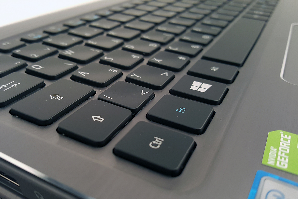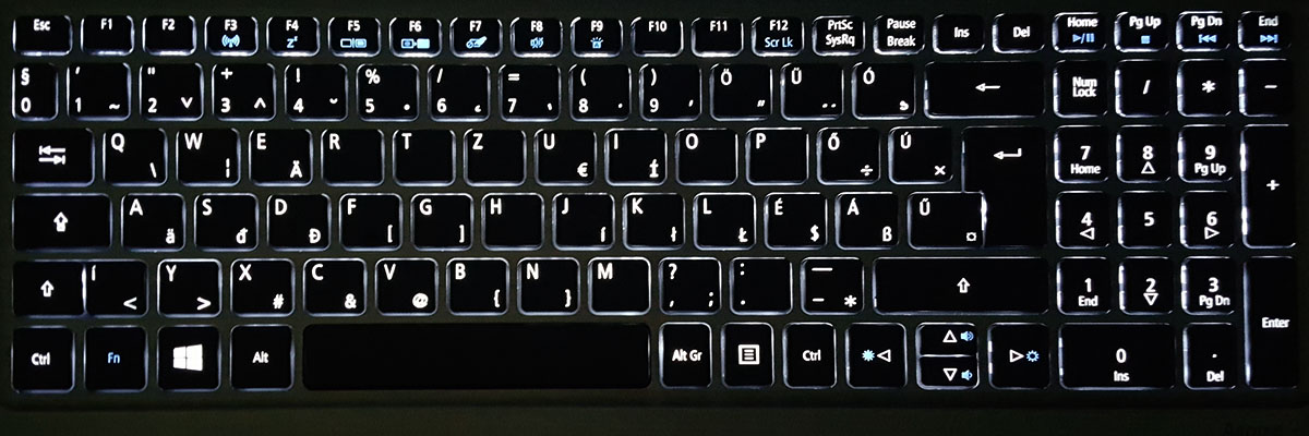 Főleg a 2-in-1 gépeknél (és az ultrabookoknál), ahol a mérnökök igen-igen ügyelnek arra, hogy minél vékonyabb gépet alkossanak, gond szokott lenni, hogy a gombok számára nem jut elég hely – na nem szélességében, hanem magasságában. Vagyis gyakori, hogy lapos gombokat és nagyon rövid leütési utat kapunk. A lapos gombokat az Acer R15-ön is üdvözölhetjük, és a leütési út sem valami nagy, mindössze 1,49 milliméter, viszont sikerült annyira keményre hangolni őket, hogy a gépelés kényelmes. Alig lassabb az R15-tel dolgozni, mint egy klasszikus asztali billentyűzettel. És a gépelést nemcsak a keménység segíti, hanem az is, hogy a nyomáspontról egyértelmű visszajelzést kapunk. A kényelmi szolgáltatások között a háttérvilágítást mindenképpen meg kell említenünk, és természetesen a numerikus rész mellett sem mehetünk el szó nélkül – főleg, hogy ennek beépítése ellenére teljes méretű gombokat kapunk az „alfa” részlegen is. Sajnos ezzel együtt sem mondható tökéletesnek a billentyűzet, mivel a kurzormozgatók közül a fel/le gombok csak fele magasságúak.