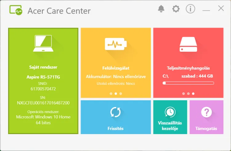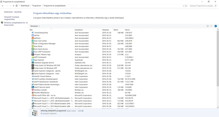Fentebb már említettük, hogy a gép teljesítményével semmi gond sincsen, egy kicsit azonban csaltunk, és a méréseket úgy végeztük el, hogy az Acer ajándék szoftverei közül a legtöbbet eltávolítottuk. Teljesen felesleges például az ablakok helyzetének variálásához saját szoftver használni, amikor a Windows 10-ben remek beépített lehetőség van minderre, és azt sem látjuk indokoltnak, hogy az Acer összes felhő alapú szolgáltatását igénybe vegyük. Úgyhogy vásárlást követően mindenkinek azt ajánljuk, hogy alaposan böngéssze át az előre telepített alkalmazások listáját, és minden olyat, amire nincsen szükség, érdemes eltávolítani. Teljesen felesleges például a WildTangent kliens (játékokat ajánl fel telepítésre), és az Amazon/Kindle is, ráadásul a feltelepített vírusirtót is legfeljebb csak 1 hónapig lehet használni fizetés nélkül, vagyis a program hozzáadott értéket nem képvisel.