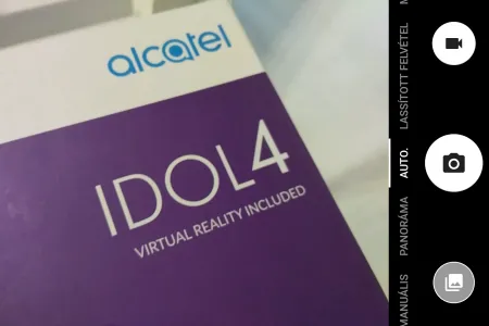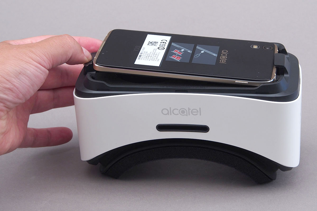 Az Alcatel Idol 4-hez csomagolt VR szemüveg (ami egyébként a telefon csomagolásaként is szolgált) az egyszerűbb szerkezetek közül való, de azért komolyabb természetesen, mint a Google-féle hajtogatós Cardboard. Műanyagból készült, és annyiból modellspecifikus, hogy tökéletesen csak az Idol 4-et tartja, de elvileg más telefonokat is beletehetünk, ha ez minden vágyunk, egészen addig, amíg a kiszemelt készülék vastagsága a 7,1 mm-t nem haladja meg.