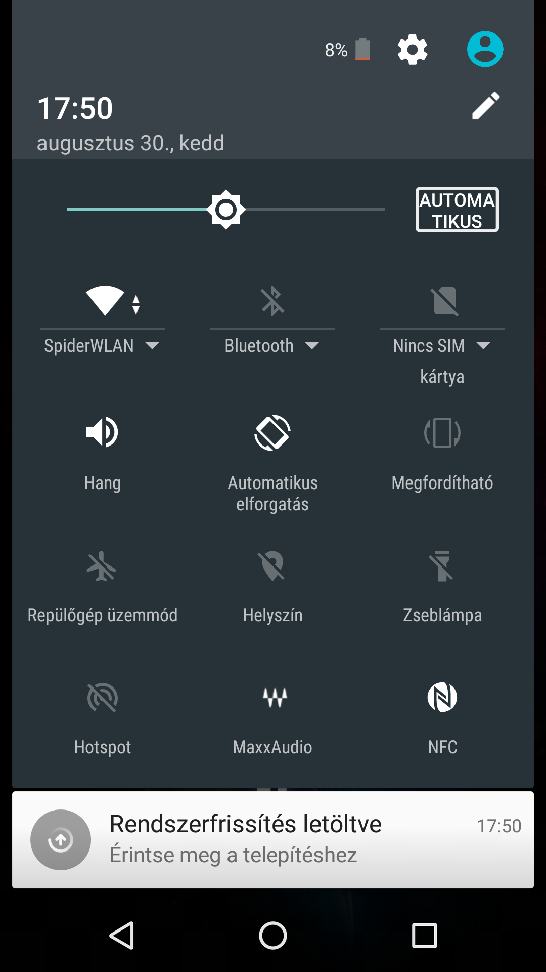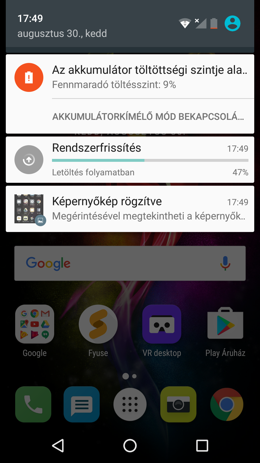 Az értesítési tárhely és a kapcsolópanel szintén a Google logikája szerint működik, vagyis egy lehúzással az értesítéseket kapjuk, a másodikkal pedig a kapcsolókat. Gyorsgombok itt nincsenek.