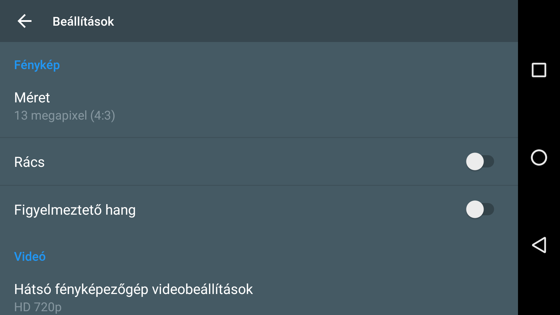 A kezelőfelület rendben van: balra a gyorsgombok (kameraváltás, éjszakai mód, időzítő, HDR, vaku és beállítások), jobbra pedig az üzemmódválasztó, a galéria és az exponálók sorakoznak. Van manuális mód is, ha ezt választjuk, akkor kézzel állítható az ISO, a záridő (1/8000-1/4), a fehéregyensúly (2000-8500K) és a fókusz. Ezt leszámítva viszont extra opciókat (például segédvonalak) ne nagyon keressünk.