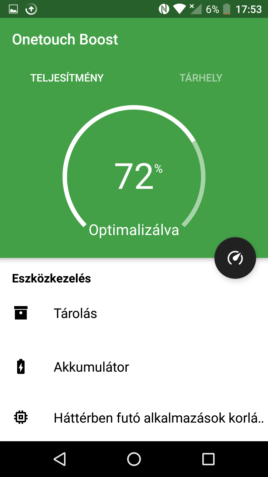A menü szintén gyári, megspékelve némi extra tudással. A gesztusok rész alatt bekapcsolhatjuk például a kesztyűs módot, de beállíthatjuk azt is, hogy a lefelé fordított telefon rögtön el is némuljon. Feloldásra egy extra lehetőség a dupla koppintás. A bekapcsoló gomb dupla megnyomásával elindíthatjuk a fényképezőt, igazán mégis a Boom gomb izgalmas, amit rengeteg dologra lehet beprogramozni. Kikapcsolt kijelzőnél a szimpla nyomás bekapcsolja a telefont, a dupla nyomás villámgyorsan készít egy fotót, ha pedig nyomva tartjuk a gombot, akkor sorozatfelvétel készül. Amikor az Idol 4 be van kapcsolva, akkor alkalmazásfüggő, hogy mire tudjuk használni a gombot. A kezdőképernyőn például az aktuális időjárásnak megfelelő animáció jelenik meg, a galériában kollázsokat készíthetünk, zenehallgatás közben a hangerőt növelhetjük meg vele, hívásnál a beszéd tisztaságát javíthatjuk, sőt egyes játékoknál is hasznát vehetjük, az Asphaltban például a turbó módot aktiválhatjuk segítségével.