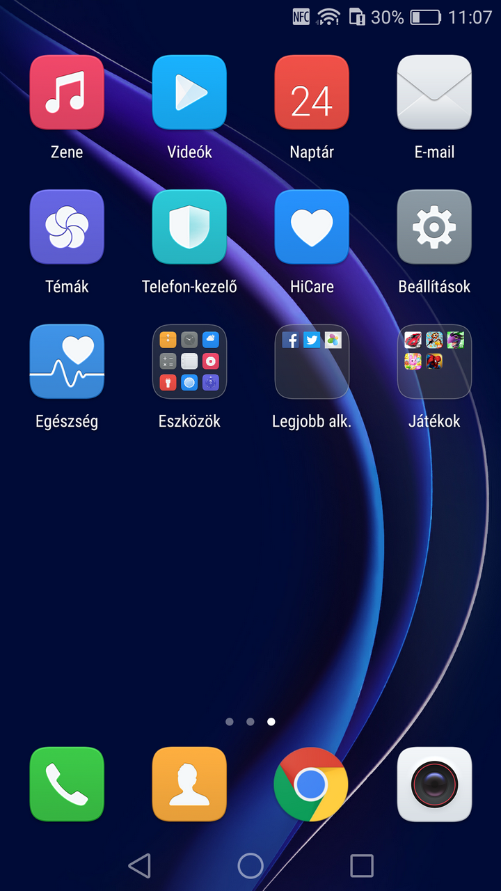 Alaphelyzetben a Google-féle remek Chrome-ot tudjuk böngészésre használni, ezenkívül pedig a népszerű Facebook és Twitter alkalmazásokat is alapból feltelepíti a készülékre a Huawei. A naptár kiváló napi/heti/havi/éves nézettel rendelkezik, a telefonos szekció három részre (tárcsázó, névjegyzék, kedvencek) van felosztva, és a gyártó már jól ismert Telefon kezelő alkalmazása is jár a Honor 8 mellé. Utóbbi révén rendszeroptimalizációs-, forgalomkezelési- és zaklatásszűrési feladatok hajthatók végre, illetve innen is elérhetők a különböző energiatakarékos üzemmódok. A zeneszámok hossza alapján történő szűrésre alkalmas zenelejátszó dalszöveg megjelenítésre és időzített kikapcsolásra képes, de hangszínszabályzó nincs benne, a videólejátszó pedig a 4K anyagokkal is elboldogul, de az AC3 hangsávba már beletörik a bicskája. FM-rádió nincs, pedig a hetes és hatos Honorban még volt. Az időzített ki/bekapcsolásra képes Honor 8 köralakú ujjlenyomat szenzora a hátoldal felső szekciójában kapott helyet: a negyedik generációs érzékelő villámgyorsan és megbízhatóan teszi a dolgát. A szenzor tapogatásával többek közt fotót/videót készíthetünk, hívásokat fogadhatunk és lehúzhatjuk az értesítési panelt, valamint újdonság, hogy az érzékelő akár be is nyomható, melynek révén egyes funkciókhoz férhetünk hozzá villámgyorsan.