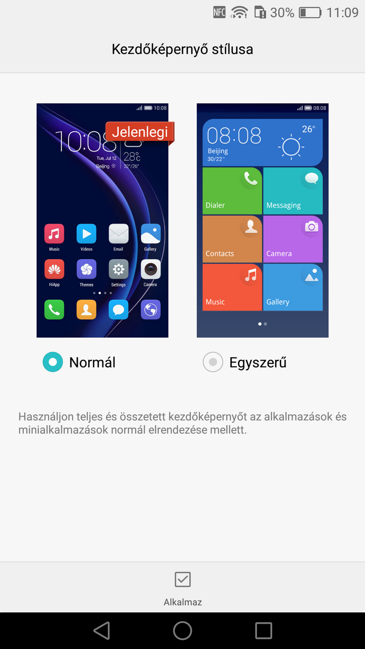 A Honor 8 Android 6.0 (Marshmallow) operációs rendszerrel startolt el a kereskedelmi forgalomban, és egyelőre nem tudni, hogy pontosan mikor érkezik majd meg rá az Android 7.0 (Nougat) frissítés. A Google-féle alapokra ezúttal is a gyártó saját fejlesztésű EMUI 4.1 felhasználói felülete lett ráhúzva, melyet a gyártó közelmúltban érkezett modelljeiről már jól ismerhetünk, így most nem is ásunk bele túlságosan mélyen a szoftver részleteibe. A hagyományos értelemben vett főmenü, vagyis az app drawer a Huawei szokásaihoz híven a távolmaradók listáját gyarapítja, vagyis az összes alkalmazásunk és widgetünk a kezdőképernyőn lévő slide-ok valamelyikén kell, hogy ott figyeljen. A mappákba történő rendezési lehetőség természetesen adott, ezenkívül pedig választhatunk, hogy 4×5-ös, 5×4-es vagy 5×5-ös ikonos elrendezést szeretnénk használni. A kezdőképernyő oldalai a széleken opcionálisan átjárhatók, lapozási effektből nyolcfélét kapunk.