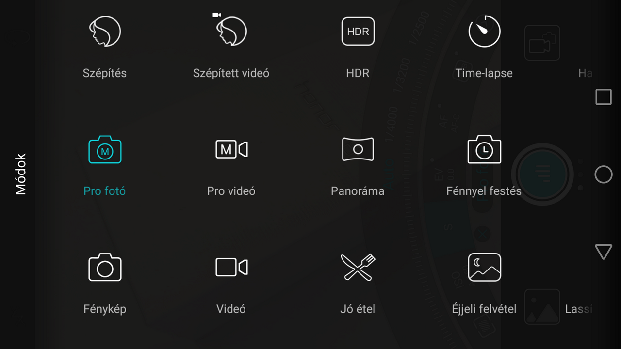 Felvételi módok: normál, szépítés, HDR, panoráma, éjjeli felvétel, fénnyel festés, vízjel