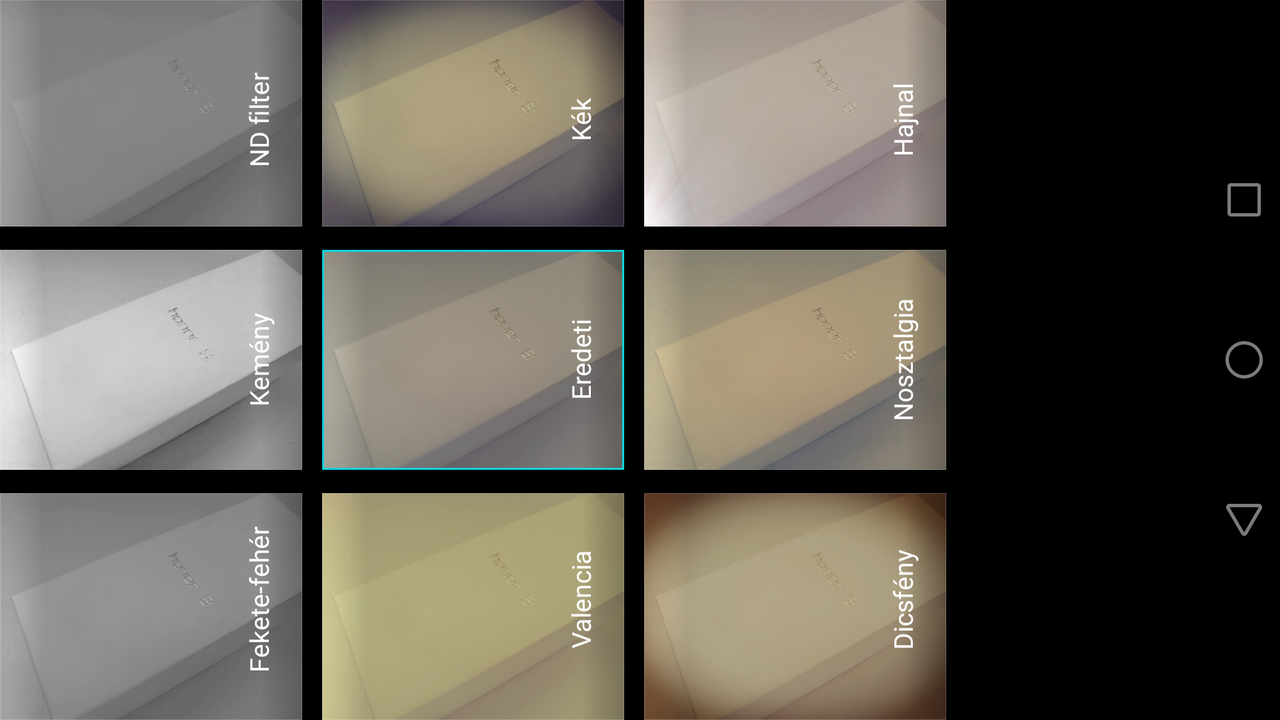 A minimalista kamera UI-n fentről húzhatjuk le a beállítási lehetőségeket, melyek sajnos még mindig nem fordulnak el a megfelelő irányba, alulról pedig a szerencsére már elforduló üzemmód ikonok húzhatók fel. A haladó fotósok számára jó hír, hogy manuálisan állítható többek közt a fényérzékenység (ISO50-3200), a zársebesség (1/4000-30 másodperc), a fókuszálás, a fehéregyensúly és a fénymérés is. Említést érdemel továbbá a hangvezérelhetőség, a mosolydetektálás, az objektumkövetés, az arcszépítés, a kis mélységélességű üzemmód, a fényfestési lehetőség, a panorámakép funkció, illetve a remek HDR üzemmód. A videófelvevő 4K-ban nem tud rögzíteni, vagyis az Ultra HD fetisiszták e tekintetben jobban járnak egy Huawei Nova Plus-szal. A Full HD mozgóképek 60, illetve 30 fps sebességgel rendelkezhetnek – a sztereó hangsávos videók 34, illetve 17 Mbit/s-os bitrátájúak. Az f2,4-es fényerejű frontkamera révén 8 megapixeles fotók és Full HD videók rögzíthetők, és persze a „tökéletes szelfi” üzemmód sem maradhatott ki.