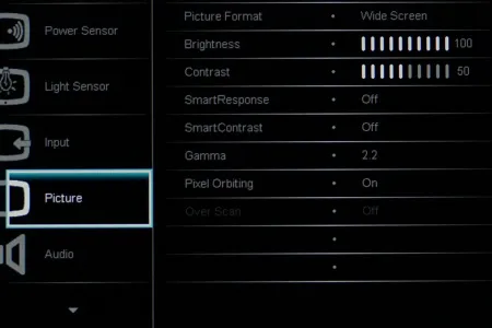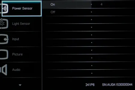 A PowerSensor is hasznos: a monitor kávájának alsó részén két négyzet alakú érzékelőt is láthatunk, ezek – a funkció engedélyezésekor – azt vizsgálják, hogy ül-e valaki a gép előtt vagy sem. Ha nem (mondjuk lement ebédelni, vagy a munkatárshoz, stb.) akkor a monitor csökkenti a fényerőt és ezzel a fogyasztást is. Amikor visszaülünk elé, akkor természetesen megint a korábbi szintre áll vissza a háttérvilágítás. A teszt során olyan nem fordult elő, hogy a monitor akkor szabályozta volna le a fényerőt, amikor előtte ültünk, amikor pedig visszajöttünk a monitorhoz, minden egyes alkalommal késlekedés nélkül állt vissza az optimális fényerő. A 18,2 wattos fogyasztást 8 wattra csökkentette ezzel a módszerrel a kijelző, tehát elég sok energiát (közel 60 százalékot) lehet megtakarítani.