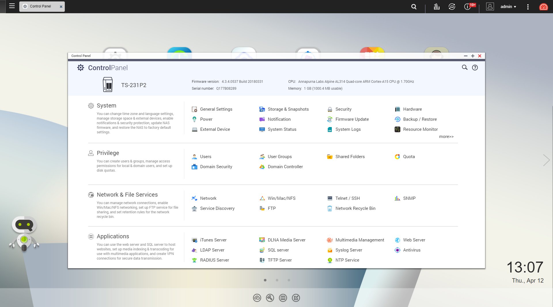 Ahogyan pár bekezdéssel fentebb már említettük, a QTS felépítése nagyon hasonlít a Windows felépítésére. Van egy Desktop felület, innen érhetők el a beállítások és a feltelepített appok, valamint a QNAP App Center, ahol további szoftvereket tölthetünk le, illetve a meglévőket menedzselhetjük. Az első bekapcsolás után kérhetjük a Photo Center, a Music Station, a Video Station, a Download Station, a File Station, a Backup Station, a myQNAPcloud, a QSync Central Station 2.0 és az Antivirus telepítését, de az App Center jóval több alkalmazást tartalmaz, így ha töviről hegyire átnéztük a beállításokat, akkor érdemes újra ellátogatni ide, és megnézni, hogy mi az, amire még szükségünk lehet.