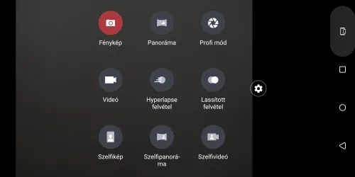 Felvételi módok: fénykép, panoráma, profi, szelfikép, szelfipanoráma