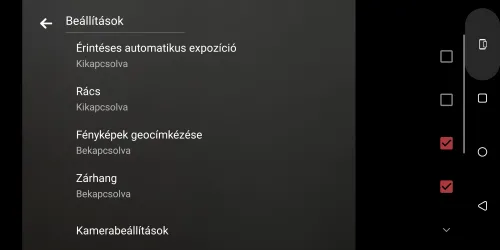 Exponálás: érintés, hangerőszabályzó