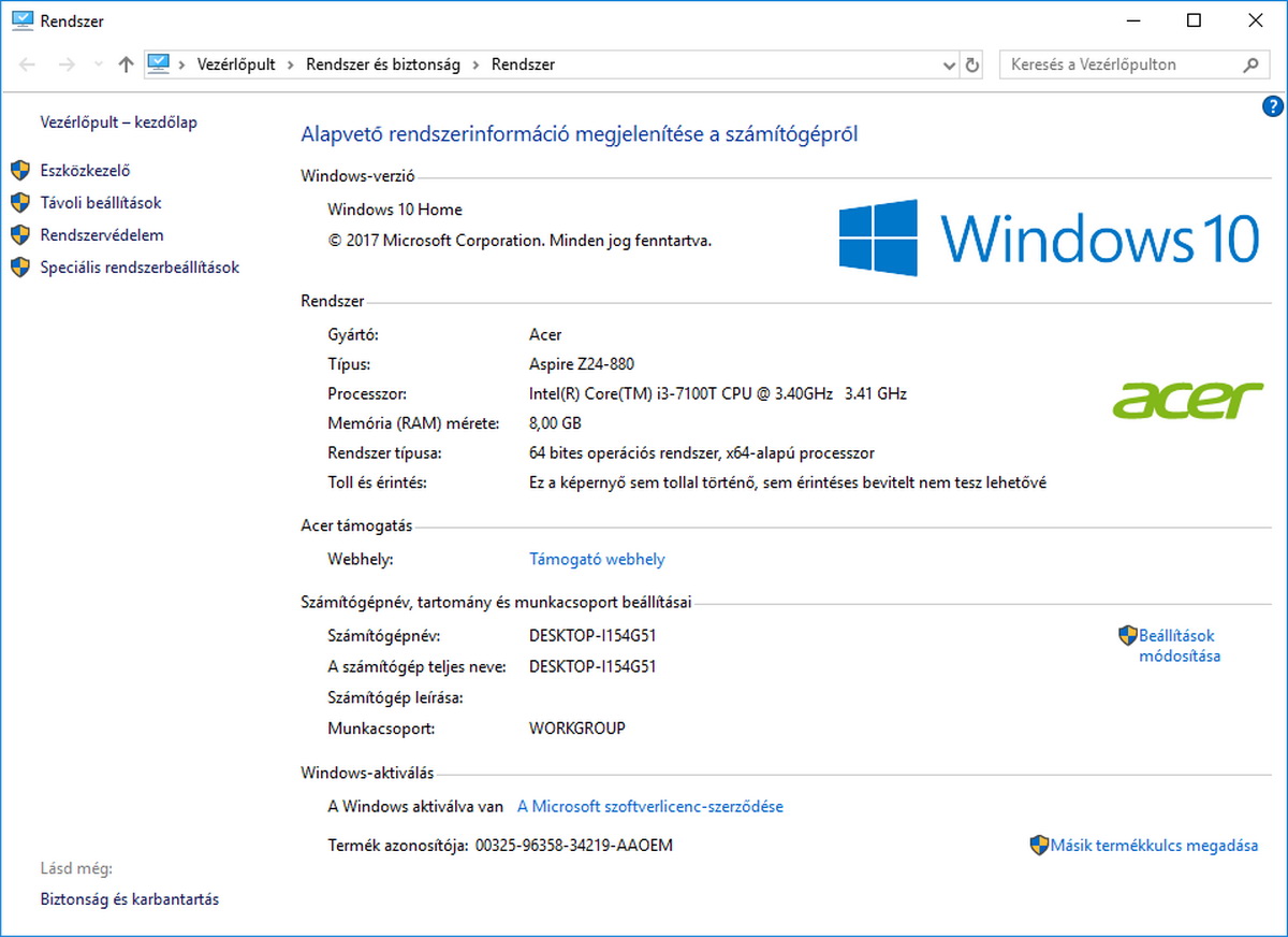 Az Acer természetesen nem pőrén, hanem Windows 10-zel adja a gépet, mégpedig a Home kiadással, 64 bites verzióban. Habár a hardver a processzort tekintve a belépő szintet képviseli, a sebességgel alapvető gond nincsen; a Windows gyorsan, másodpercek alatt elindul, de a gép kikapcsolására sem kell túl sokat várni. Természetesen a kétmagos Core i3-7100T ereje általános felhasználásra elég, a netezés, szövegszerkesztés vagy a filmek nyilván nem fognak ki rajta, és lehet azért rajta komolyabb képszerkesztést vagy videotömörítést is végezni – azzal együtt, hogy e két utóbbi feladatra nyilván nem a legoptimálisabb a konfiguráció. A kialakításból adódóan annyi előnye van az AiO-nak egy notebookkal szemben, hogy a hűtés hatékonyabb, így attól nem kell tartani, hogy az órajel a processzor tartós terhelése esetén drasztikusan visszaesne. Ami nem megy, az a játékok: ehhez nemcsak a processzor teljesítménye kevés, hanem az Intel HD Graphics 630 sem az a GPU, amelyik egy ilyen feladatra alkalmas lenne.