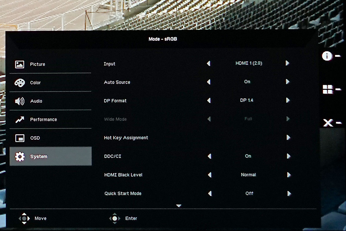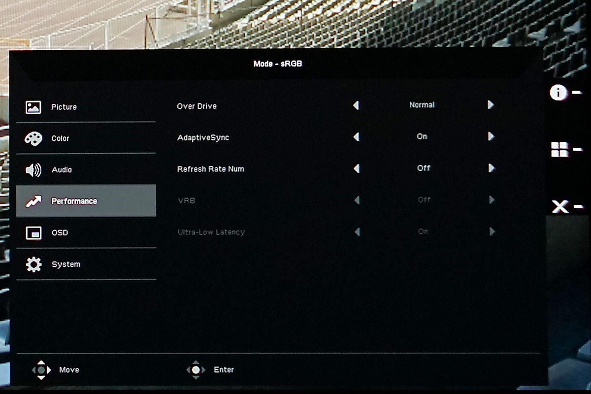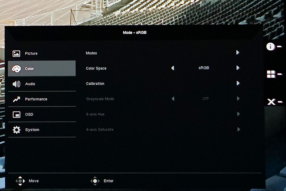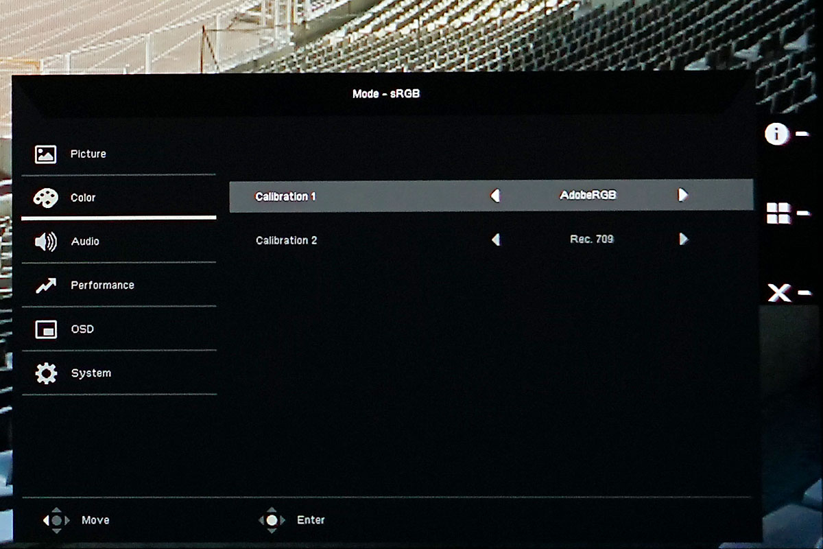 A vezérléshez egy apró joystick használható, ami némiképp eltér a megszokottól, de gyorsan lehet alkalmazkodni hozzá. A menü egy monitornál nem szokott túl bonyolult lenni, és ez alól a szabály alól az Acer CP3 sorozat sem kivétel; viszont itt is visszaköszön a Predator X27 örökség, mert a pontos kalibráció mellett lehetőség van a képjavítók kikapcsolására és akár célkereszt használatára is.