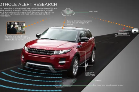 A Range Rover jövőbeli generációja a kátyúkról is tudósíthatná az utak fenntartásáért felelős szerveket.