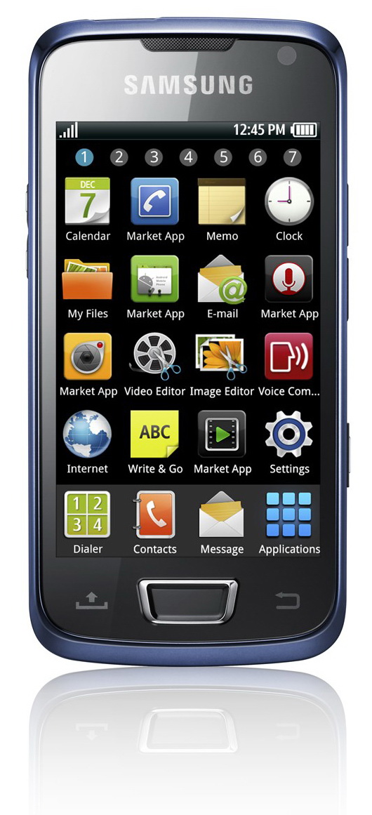 A Halo szintén AMOLED kijelzős, amely érdekes módon nagyobb is, mint a Wave esetében, 3,7 colos. Ez a telefon nem a Bada platformra épül, hanem Google Androidot futtat (2.1-es verziót), ennek ellenére a két készülék kezelőfelülete szinte teljesen egyezik. A Halo azonban nemcsak a kijelző tekintetében, hanem más egyéb jellemzőiben is túlmutat a Wave-en; belső memóriája például 16 Gbájtos, van benne projektor, támogatja a DLNA-t és beépített kamerája is jobb, 8 Mpixeles. A telefont a Wave-nél kicsiti későbbre, a Q3-ban ígéri a Samsung.