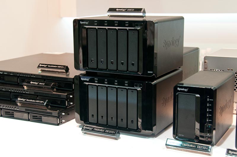 Így az utolsó napon sikerült eljutnunk a Synology standjára is, ahol a hardverek tekintetében igazi újdonsággal nem találkoztunk (azaz újabb NAS-okat nem mutattak be), de megtudtuk, hogy a nagyobb céges felhasználóknak ajánlott DS1010+ széria a cég termékei közül elsőként megkapta a VMware Ready minősítést is. Ez a minősítés csak a vállalati piacra szánt termékekre él, tehát például az otthoni, „j” betűvel jelölt gépekre (például DS710j+) nem – annak ellenére sem, hogy hardver tekintetében nincs különbség a két széria között.