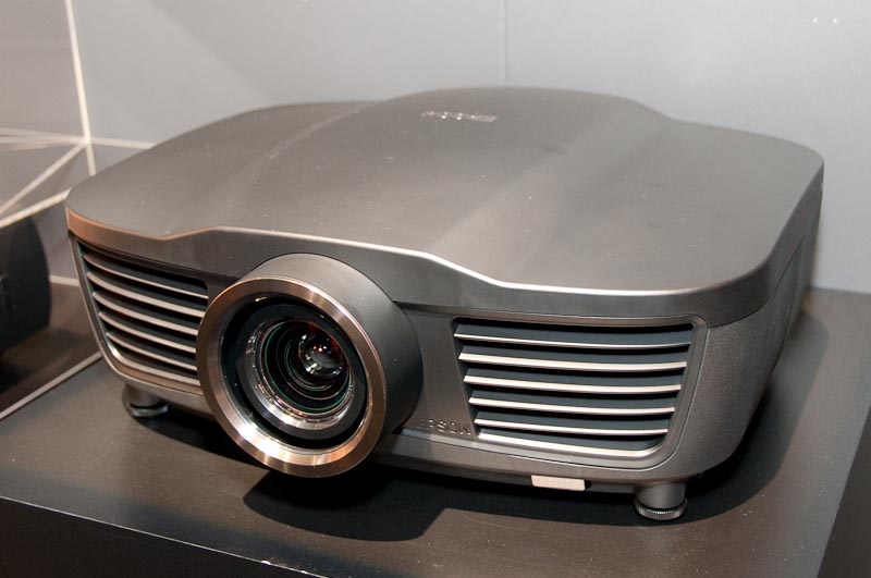 A legérdekesebbek számunkra természetesen az R széria tagjai voltak, amelyek a jelenlegi csúcsmodellek felé kerülnek mind árban, mind képminőségben. Természetesen mindkét változat Full HD felbontású, és a reflektív megoldásnak köszönhetően kontrasztarányuk egészen kiváló: az R4000 estében a natív kontraszt is eléri a 40 000:1 értéket. Maga a panel egyébként az Epson fejlesztése, és érdekessége, hogy szilícium helyett üvegalapra készül. A készülék egyébként fekete színű, míg kisebb testvére, az R2000 fehér – ennek kontrasztarányai is gyengébb valamivel, 20 000:1.