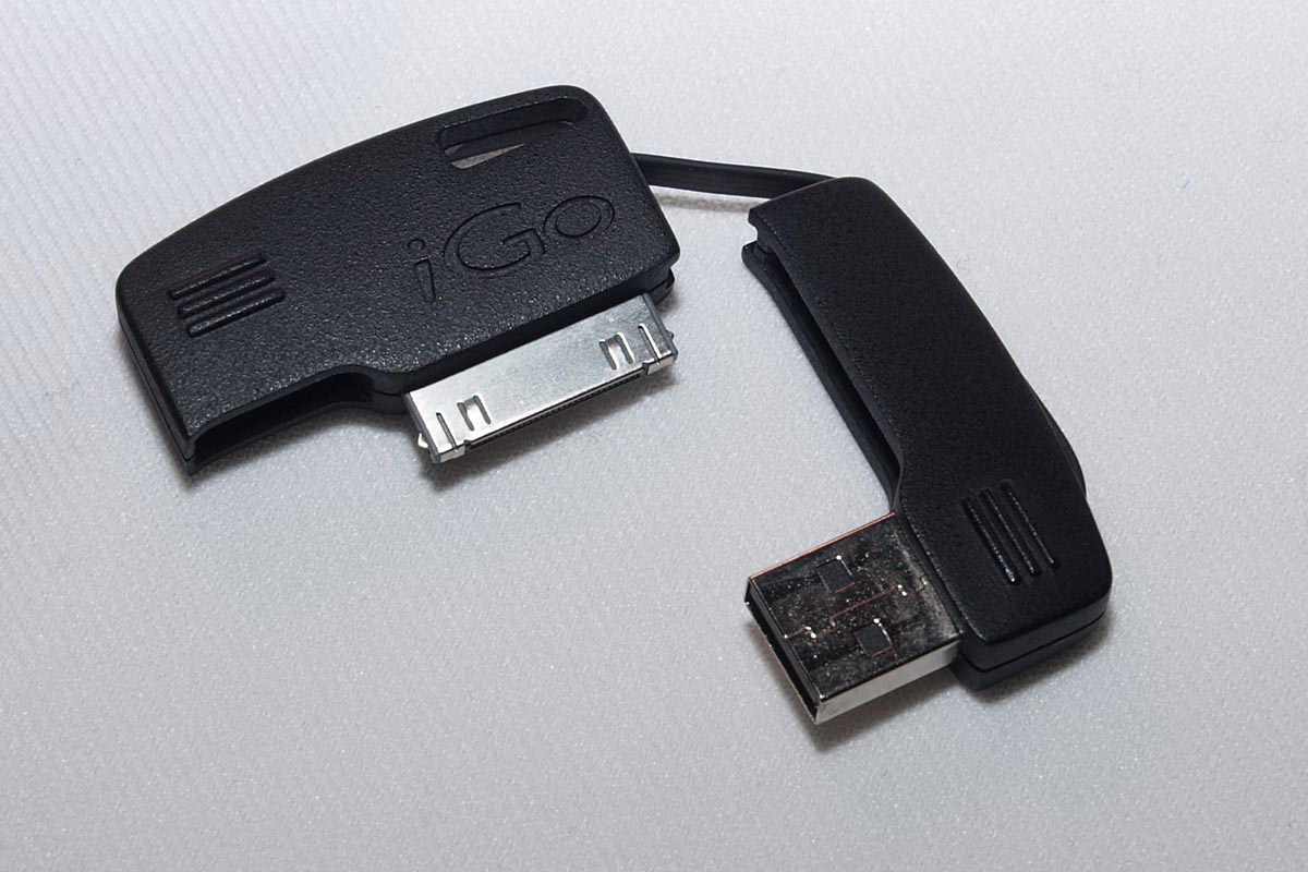 A cég másik érdekes kütyüje az iPhone adapter volt, amire leginkább mérete miatt figyeltünk fel, és persze azért, mert kialakítása olyan, hogy a csatlakozót (aminek a „másik” vége USB) utazásnál is kis helyen magunk mellett tarthassuk. Az egymásba fordítható két gumitappancs azért is praktikus, mert így szállítás közben a csatlakozók a zsúfolt táskában sem karcolják meg a többi kütyüt.
