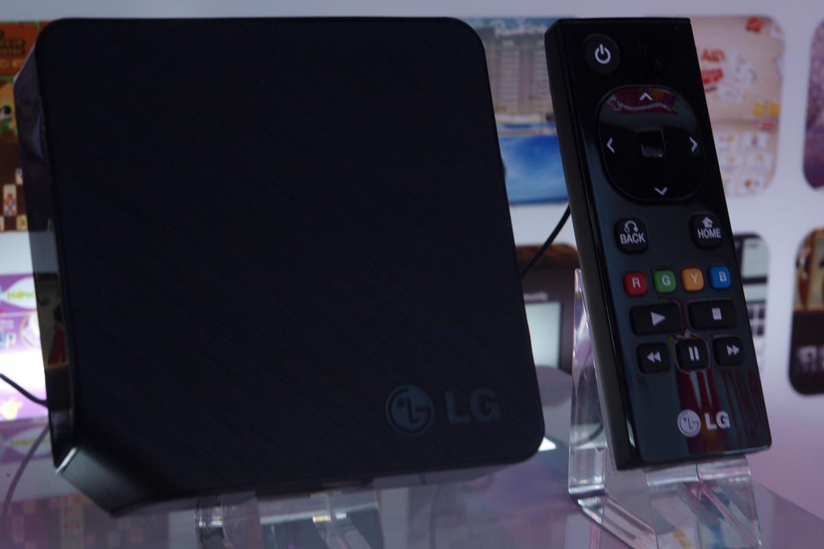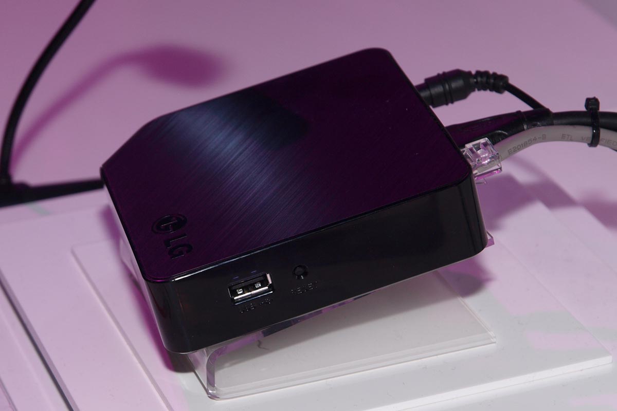 Ahogyan korábban már tudni lehetett, az LG egy set-top-boxot is hozott Las Vegasba, amivel a korábban vásárolt tévéket is okosítani lehet. A boxon egy USB port van, hogy külső adathordozóról médiafájlokat is lejátszhassunk, hátul pedig a HDMI, az optikai audio és az Ethernet csatlakozók a legfontosabbak. A Box az első félévben érkezik, és nem lesz drága, de egyelőre azt nem árulták el nekünk az LG-nél, hogy ez pontosan mit is takar.