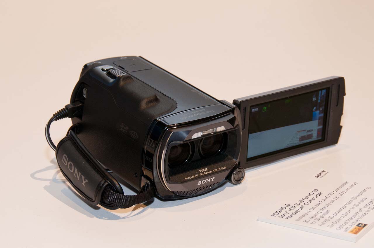 A két objektív nyilván több helyet igényelt, ezért a kamera meglehetősen tömzsi lett, de a jó súlyelosztás miatt egyáltalán nem kényelmetlen fogni (szemben a Panasonic fejnehéz megoldásával). A gombok elhelyezkedése is jó, minden éppen kézre esik. A kamera képminőségére sem lehet igazán panasz, de az egyértelmű, hogy a felvevő a világos környezetet jobban kedveli: a kamerával készített demó film minősége kiváló volt, ugyanakkor a Sony (egyébként elég világos) standján a járókelőket mutató demó képe már meglehetősen zajos volt.