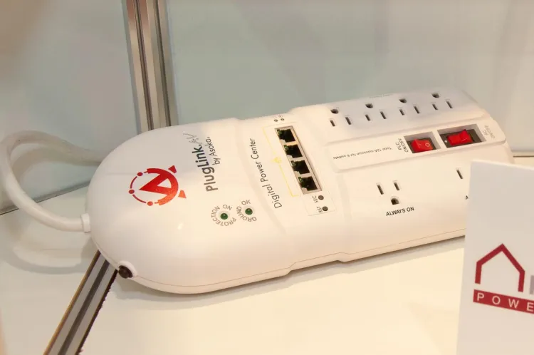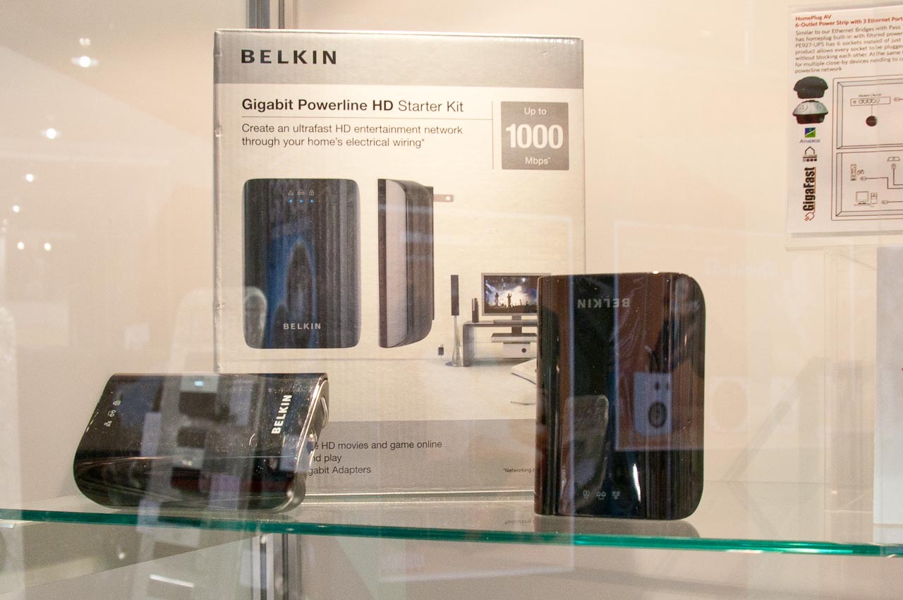 Az adatátvitelre az elektromos hálózatot használó megoldások kiállításán bukkantunk erre az érdekes központra, ami egy személyben zavarszűrő a 230 voltos hálózathoz, valamint egy többcsatornás HomePlug AV adapter, ami 200 Mbps sávszélességre képes.