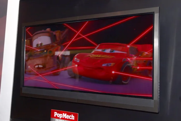 Az 58 colos képátlójú, 2560×1080 pixeles panellel szerelt tévé alumínium keretbe került, és nemcsak a VIZIO többi termékéhez képest szép, hanem a globális mezőnyben is. A megjelenítő elektronikája mindent tud, amire szükségünk lehet: a képalkotás 240 Hz-es, és természetesen 24p is rendelkezésre áll. Az egyelőre csak prototípusként létező, ezért név nélküli tévé passzív szemüveggel működik. (Éppen ezért majdnem biztos, hogy a panelt az LG gyártja a VIZIO-nak – a cégnél azonban policy, hogy a partnereket sosem „adják ki”, így ezt a cég PR-osa nem erősítette meg.)