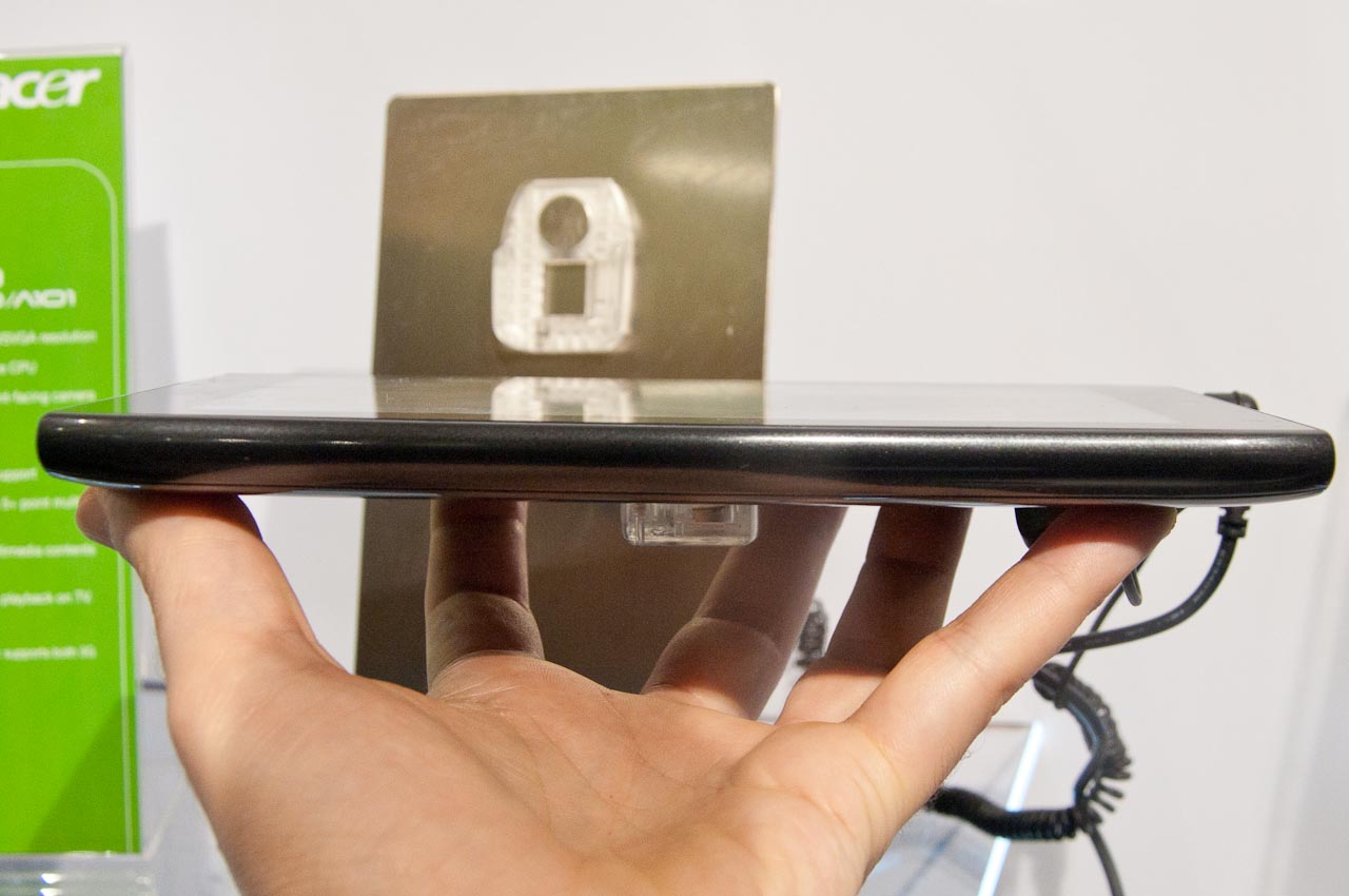 Egy mérettel kisebb, és így sokkal jobban hordozható az Iconia Pad A100-as, ami hardverét tekintve egyébként megegyezik a nagyobb változattal, csak éppen ennek kijelzője 7”-os és 1024×768 pixeles felbontású.