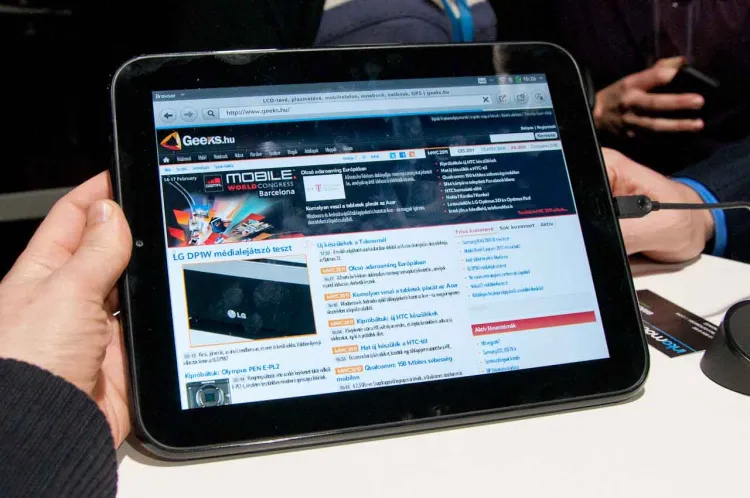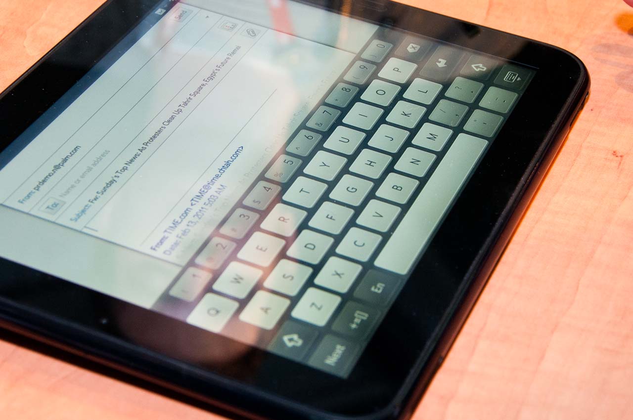 Hasonlóan impozáns a táblagép is, és ugyan a bejelentett konkurensekhez képest kicsit nagynak és nehéznek éreztük most 730 gramm körüli tömegével, nagyon jó fogása van, könnyen kézben tartható. Az operációs rendszer a rövid próbálgatás alatt elég logikusan kezelhetőnek tűnt, nem voltak nehezen megtanulható „trükkök”, pillanatok alatt ráéreztünk a használatára – és ami nagyon tetszett, az a virtuális billentyűzet, amely nemcsak többféle méretű lehet, de van rajta numerikus sor is, így végre nem kell váltogatni, ha számokat akarunk beírni.