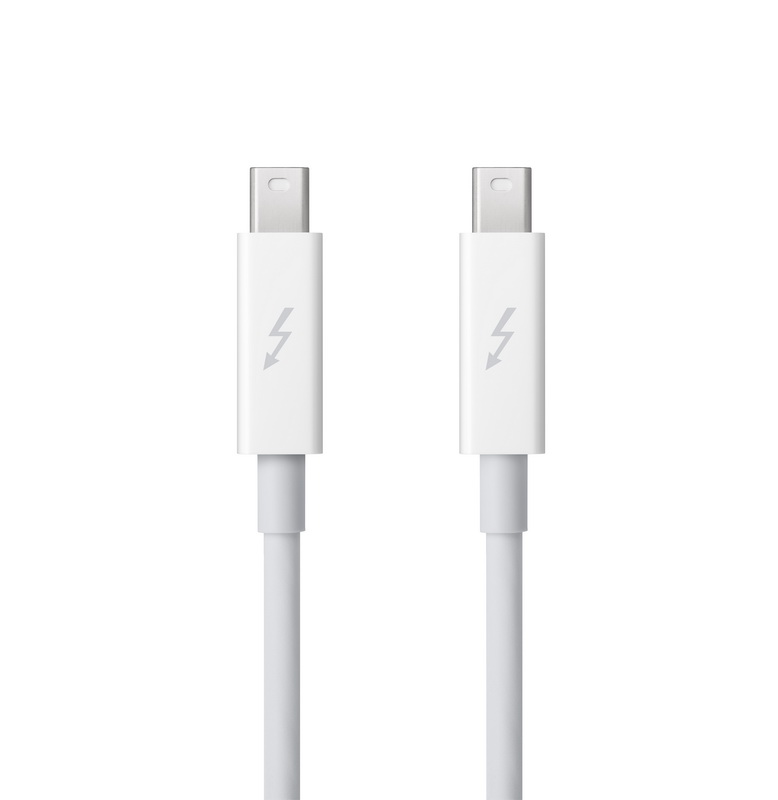 Az előzetes várakozásoknak megfelelően az interfész elsőként az Apple gépeiben jelenik meg, a cupertinoi vállalat ma bemutatott MacBook Pro gépeiben, hogy egészen pontosak legyünk. Az Intel végül nemcsak optikai, hanem normál (réz)kábeles összeköttetést is támogat a szabvány keretein belül, oly annyira, hogy az első implementáció is ezt használja, de a gyártó állítása szerint ez a működési sebességre nincs hatással, az továbbra is 10 Gbps. Elképzelhetőnek tartjuk ugyanakkor, hogy később, a sebesség növelésével szegmentál majd az Intel, és a 100 Gbps körüli tempóhoz mindenképpen optikai kábelt ír majd elő.