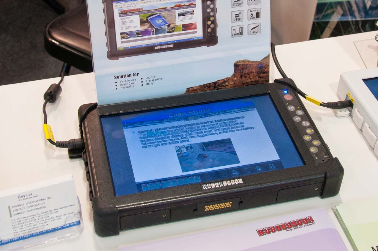 Ahogy a táblagépek népszerűsége nő, úgy jelennek meg az ipari vagy katonai célra tervezett változatok. A Ruggedbook SR820 nevű példány valójában egy klasszikus táblaPC lenne, ha járna hozzá billentyűzet – ennek hiányában viszont „csak” egy Windows 7-et használó tabletről van szó. A készülék strapaállóságáról a masszív keret mellett a sarkokon található gumibakok és a szigetelt kivitel gondoskodik.