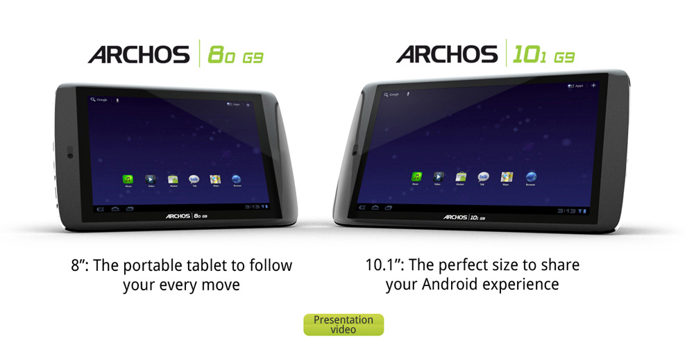 Az Archos csütörtökön, Denverben mutatta két új, kilencedik generációs készülékét, a 80 G9-et és a 101 G9-et. A gyártó immáron Google partnerként jelenthette be a készülékeket, ami azt jelenti, hogy mindkét tableten az Android Market is megtalálható lesz végre, valamint az Archos jogosult használni a Honeycomb frissített, 3.1-es verzióját is. A gépeken az Adobe Flash támogatás is előre telepítve lesz megtalálható.