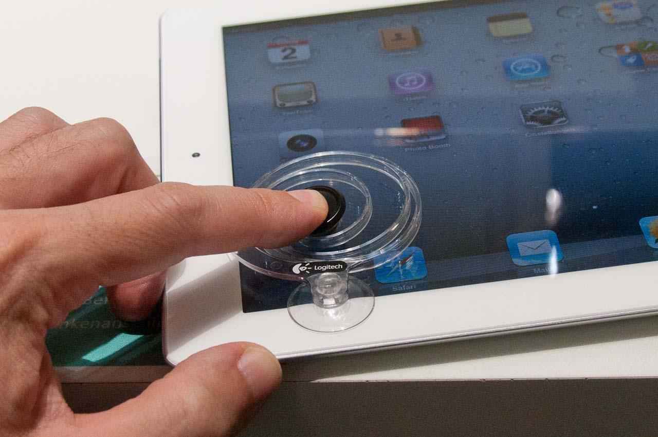 Ezek közül a legérdesebb és egyben talán a legrosszabb ár/érték aránnyal rendelkező valami ez a Tablet Joystick for iPad névre hallgató eszköz (a név egyébként megtévesztő, hiszen bármilyen érintőképernyős eszközzel működik). Legfontosabb alkatrésze egy rugózó műanyag spirál, amelynek közepén egy ujjunkkal mozgatható pointer található, külső ívén pedig két tapadókorong, amikkel pedig a kijelző sarkához rögzíthetjük. Funkciója egyszerű: hüvelykujjunkkal mozgatva meglepően precíz képernyőmozgatást tesz lehetővé, így játékokhoz ideális kiegészítő. Egyetlen problémánk vele az ára: 19 euróba kerül, ami még úgy is soknak tűnik, hogy egy hordtáskát is kapunk hozzá.