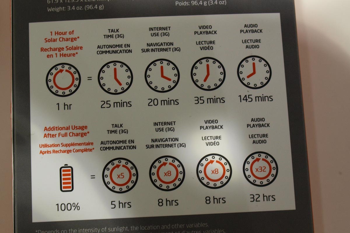 Az egyetlen gond a töltővel az, hogy nagy és csúnya lesz tőle az iPhone 4, valamint tömege is nő 96 grammal. Persze nem kell mindig a mobilon tartanunk, az viszont mindenképpen jó, hogy amennyiben így teszünk, attól az iPhone 4 még használható marad. 1 órányi töltéssel 25 perc beszélgetést, 20 perc netezést, 35 perc netezést vagy 145 perc zenehallgatást kaphatunk extraként, míg teljesen feltöltött akkuval a plusz idők így alakulnak: 5 óra, 8 óra, 8 óra, 32 óra. A töltési idő 8-10 óra, a napfény intenzitásától függően. Egy kapcsoló segítségével egyébként még azt is eldönthetjük, hogy a töltés során csak a töltő saját akkuját vagy az iPhone akkuját is töltsük-e. Csak nehogy elfelejtsük, hogy mostantól fejjel lefelé kell a telefont lerakni az asztalra.