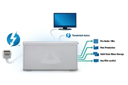 A notebookok, vagy kis helyigényű készülékek nem igazán bővíthetők utólag, ez igaz az Apple készülékeire is. A Magma Express Box 3T ezt a kis csorbát igyekszik kiköszörülni, mégpedig oly módon, hogy az ezüstszínű házába három darab PCI-e kártyát képes befogadni. A bodoz és a számítógép között a kapcsolat az Intel által kifejlesztett Thunderbolt csatlakozó segítségével épül fel.