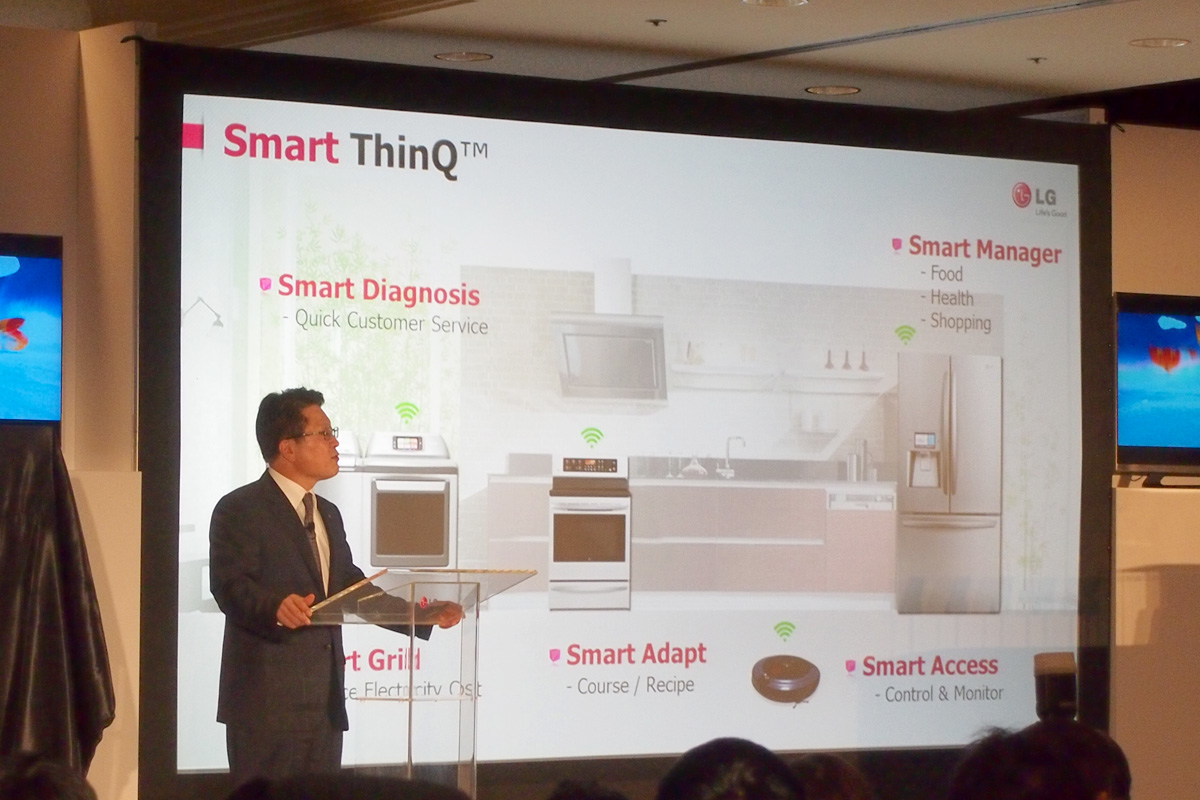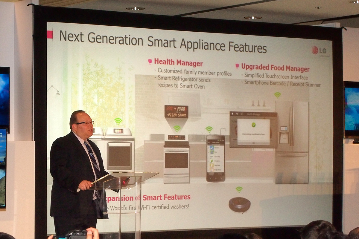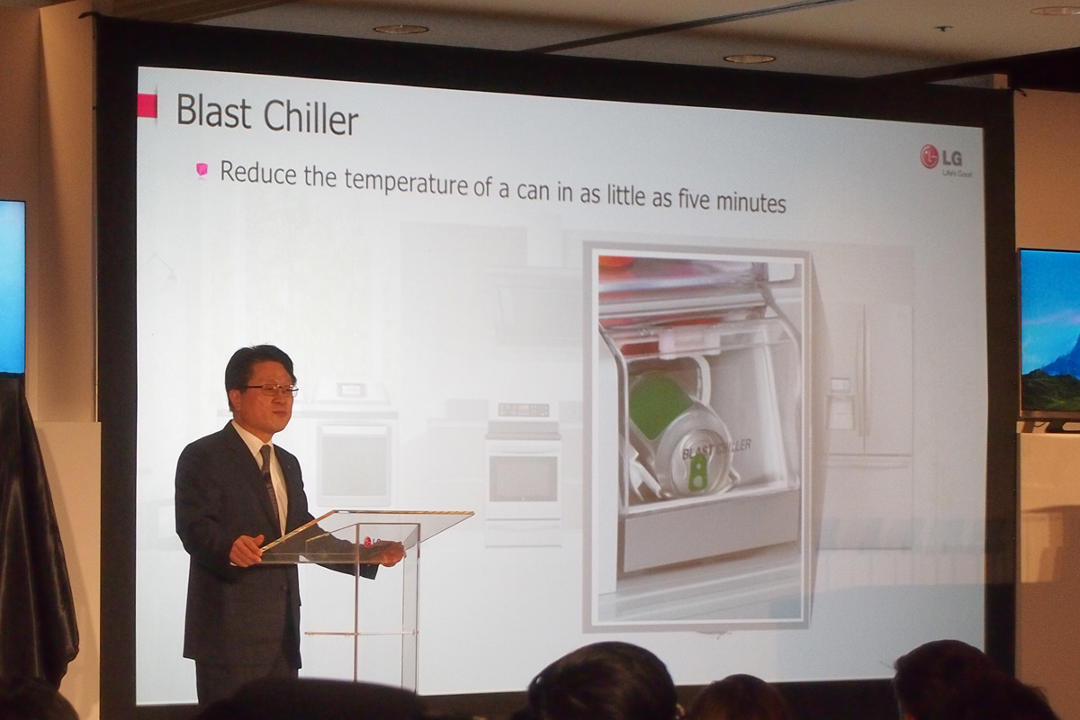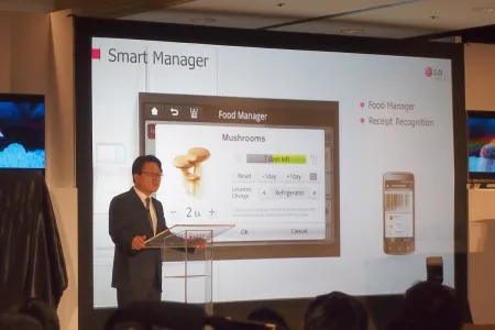 Smart ThinQ: Smart Diagnosis, Smart Grid, Smart Adopt, Smart Access. Ezek a technológiák már tavaly is léteztek, most a kulcsszó a Smart Manager, ami az okos eszközök közötti kapcsolatot teremti meg. Akár telefonról és távolról is nyomon lehet követni pl., hogy mi van a hűtőben, van automatikus rendelési lehetőség, letöltési lista, stb. De a rendszer tud mást is, pl. az egészségügyi adatokat tárolja akár a család minden tagjára, és azokat külön is kezeli. Nagy dobás a Blast Chiller, amivel az LG innovációs díjat is nyert: dobozos üdítőt vagy sört 5 perc alatt lehűt „iható” hőmérsékletre, ami, ha az amerikai kb. 0 fokos átlagos felszolgálási hőmérsékletet vesszük, igazán impresszív teljesítmény.