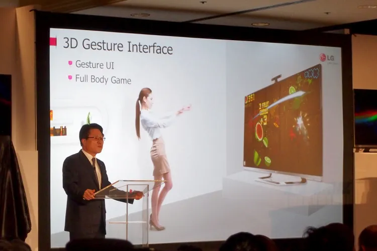 Ami ennél is jobb (és így valószínűleg a Samsungnál is betaláltunk vele): jön a mozgásfelismerés a tévékbe. Egy, a tévé tetejére felszerelhető 3D kamera segítségével a 3D gesztusokat is tudja értelmezni a készülék, amivel nemcsak irányítani lehet az alapvető funkcióit, hanem még az alkalmazásboltból letöltött játékokat is lehet majd mutogatással játszani.